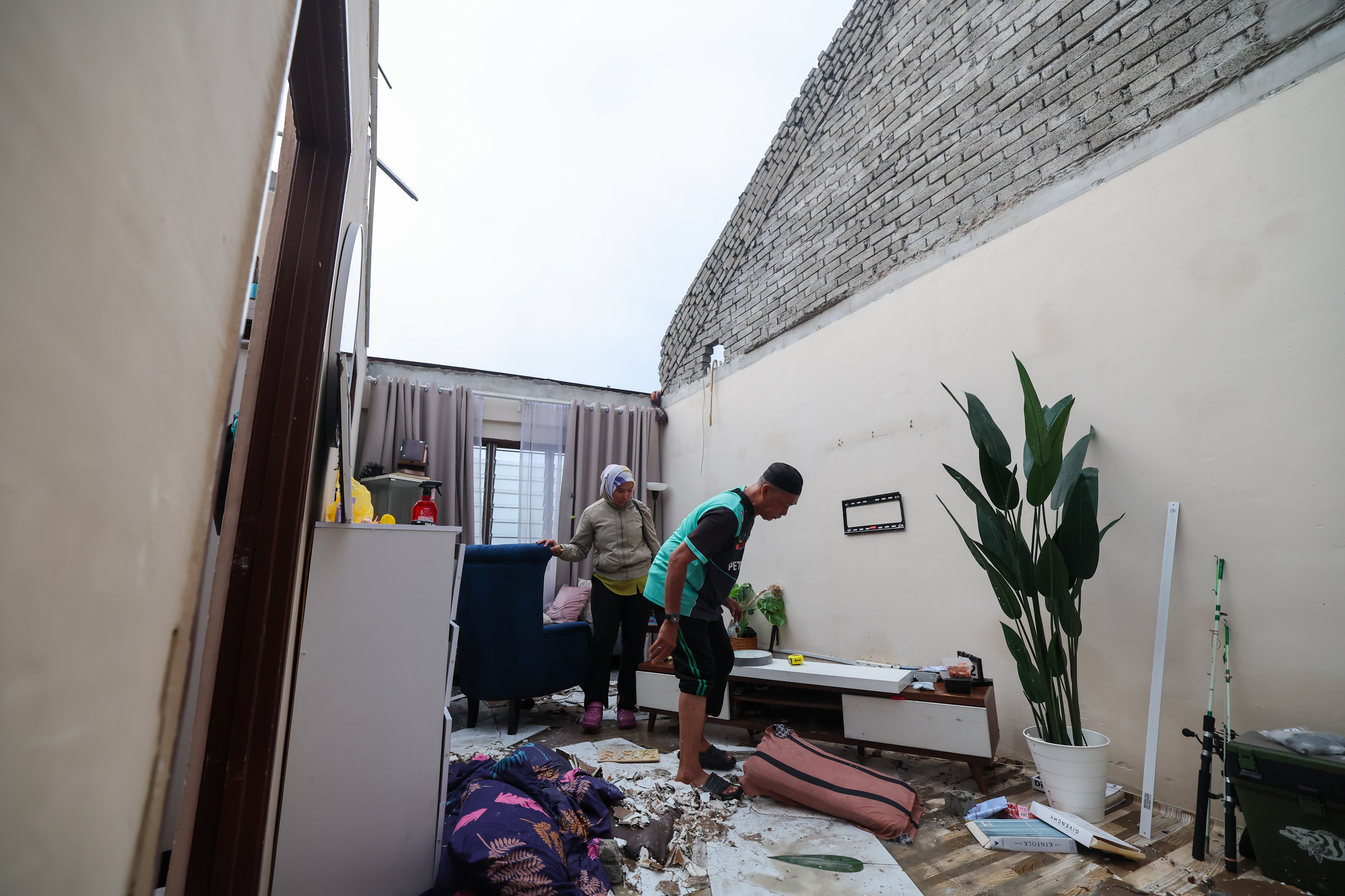 在加影Semanja一带的半独立式别墅经历狂风吹袭后,多个单位屋顶被掀飞。