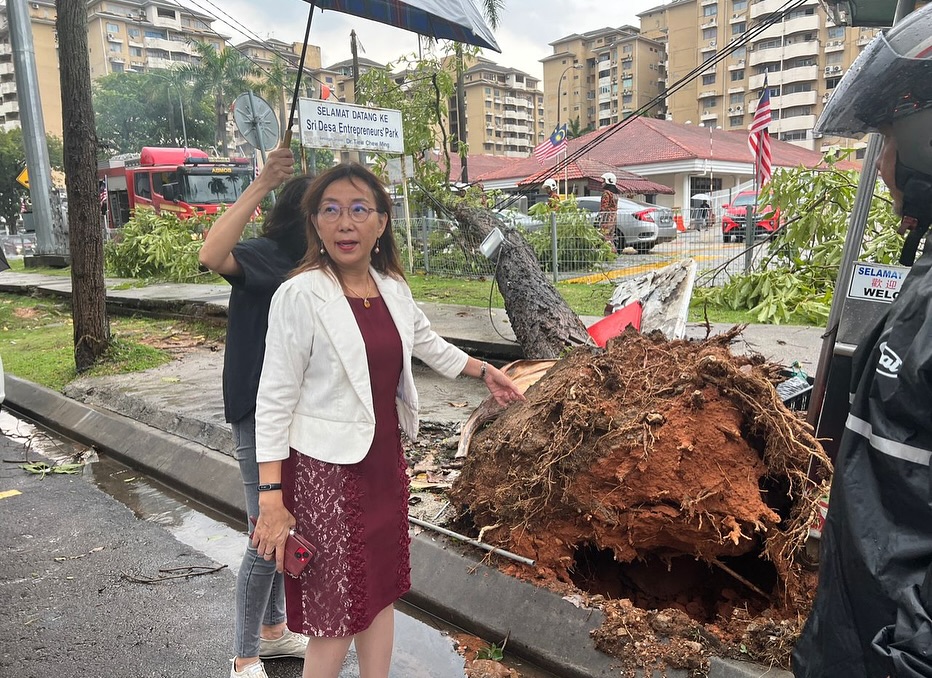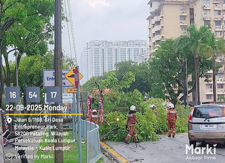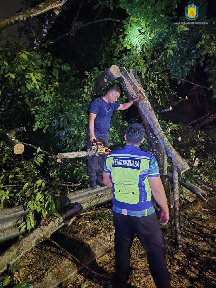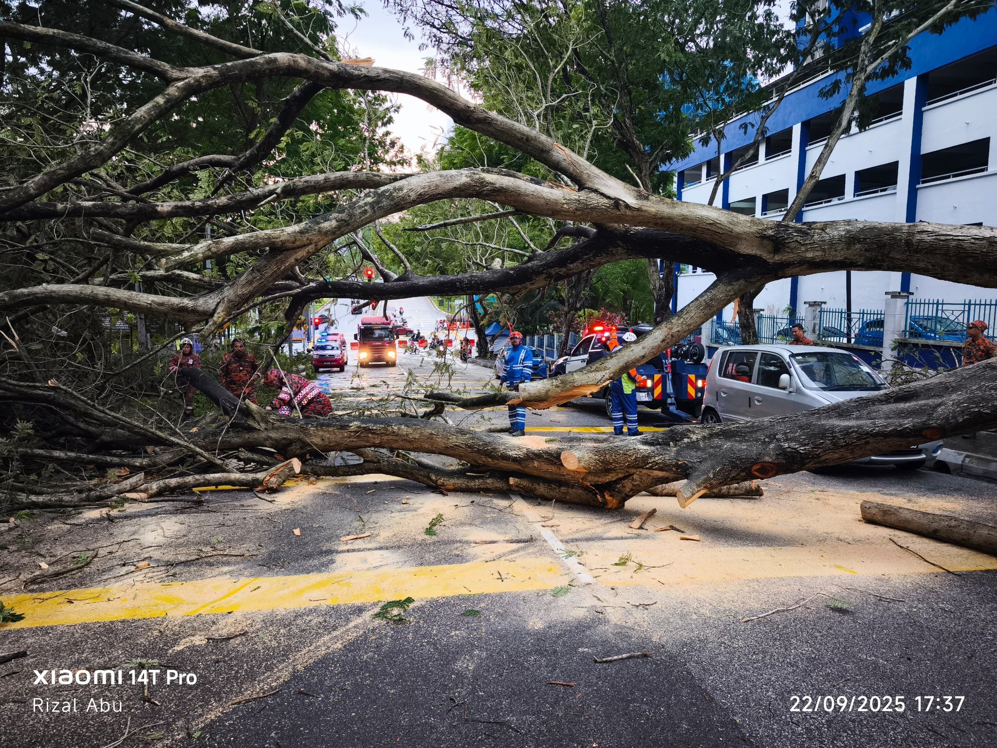 昨午4时的一场暴风雨,导致隆市一带包括班底谷、甘榜格灵芝(Kg Kerinchi)班台慕尼7路(Jln Pantai Murni 7)、白沙罗路、孟沙丹笃路和Tempinis路、孟沙路朝往KTM交通圈方向的路段、端姑嘉化路口(Persimpangan Tunku Jaafar)、珍迪拉沙里路(Jalan Cenderasari)、文良港12楼、斯嘉镇的Persiaran lemak、直落玻璃路(Jalan Telok Pulai, Taman Seputeh)毗邻公园、旧古仔斯里帝沙鸿图园(Sri Desa Entrepreneur Park)的9/116b、汉都亚区、克拉末区和敦拉萨等地区发生树倒事件。