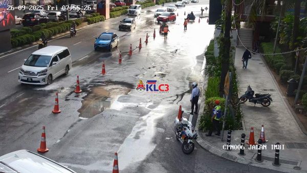 燕美路发生地下水管破裂,造成道路积满水流,影响靠近时代广场(Times Square)的左车道的交通,造成从甘榜班丹路往汉都亚路方向交通延误。