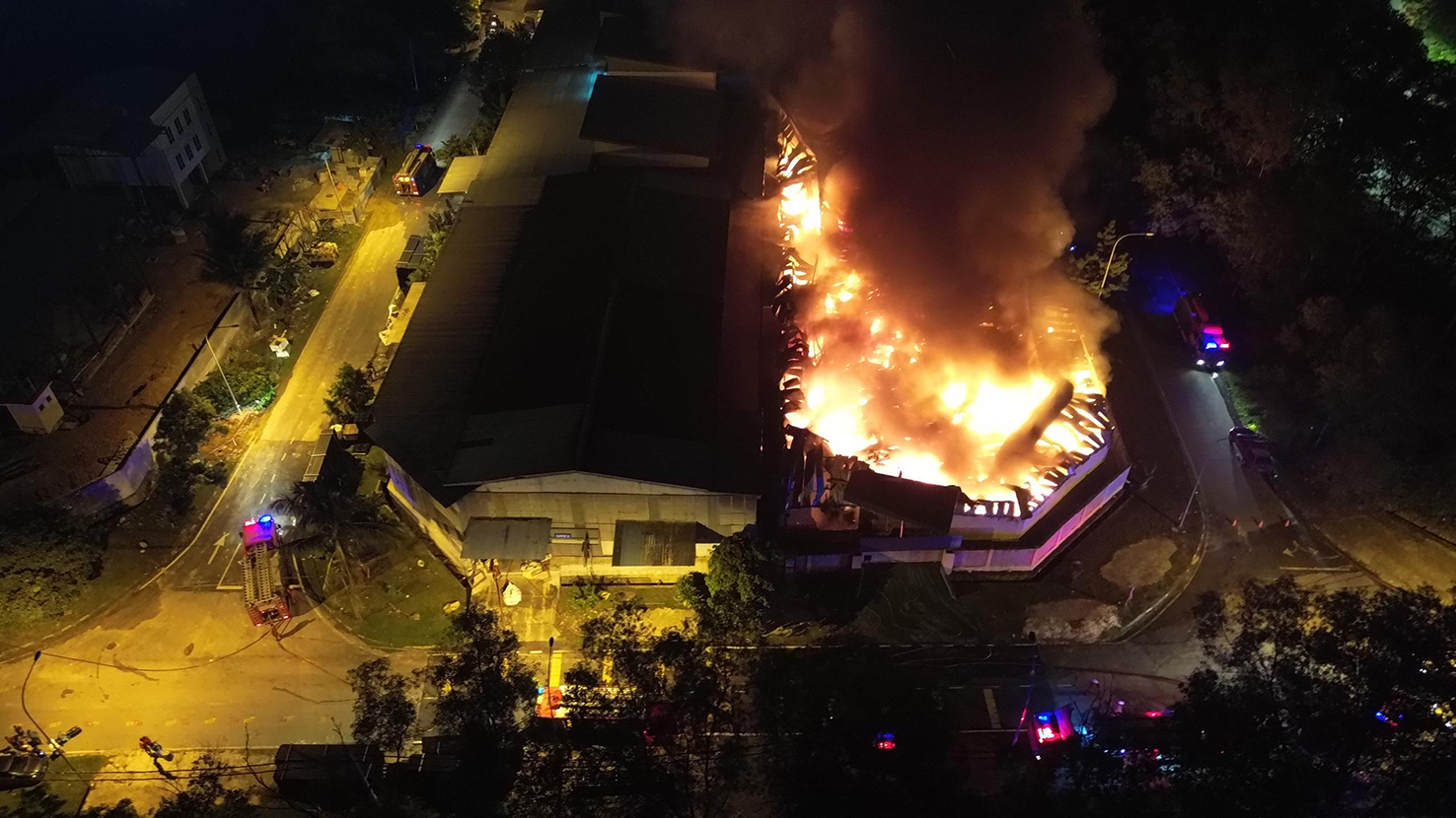 (鹅唛3日讯)大型PVC管工厂深夜陷入火海,36名消拯员连夜扑救,从黑夜奋战到天明,最终80%厂房被烧毁,所幸无人伤亡!